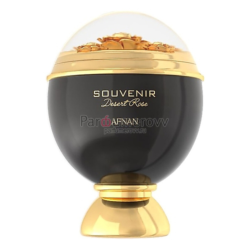 Afnan Souvenir Desert Rose — волнующий, загадочный и манящий гурманский унисекс-парфюм, выпущенный в 2020 году арабским парфюмерным брендом Afnan. Аромат с названием «Сувенирная роза пустыни» заключен в эксклюзивный золотисто-черный флакон, под прозрачной сферической крышечкой которого находится фактурный букет золотистых цветов. Ароматическая композиция задумана, как идеальный спутник на пути воспоминаний. В начале звучания парфюм Souvenir Desert Rose дарит аромат спелых фруктов, мускус и волнующий сладкие ноты. Им на смену приходят ноты свежести и запах сладких тропических фруктов. Легкие, чуть мерцающие пудровые ноты придают сердечному аккорду особую красоту и загадочность. И все это ароматическое великолепие покоится на мягкой древесной базе из бархатисто-пряного сандала и смолисто-соленых оттенков амбры с легкими горьковато-цитрусовыми нюансами лимона.