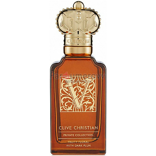 V: Fruity Floral – элитные духи с цветочно-фруктовым ароматом для женщин, представленные в 2017 году модным парфюмерным брендом Clive Christian из Великобритании. Чувственный соблазнительный аромат V: Fruity Floral из новой коллекции ярких современных ароматов бренда ( 5 женских и 5 мужских) вдохновлен изысканным миром балета, английским искусством и непередаваемой красотой природы Шотландии - родины парфюмера и владельца марки. Аромат открывается очаровательными свежими нотами бергамота, дымного, туманного и таинственного ладана с теплым пряным акцентом черного перца. Основа композиции струится чистыми изящными оттенками жасмина и туберозы, которые страстно сплетаются в шлейфовых нотах с богатым сладостным аккордом чернослива и чувственным ароматом белых цветков иланг-иланга. Парфюм V: Fruity Floral разработан для ношения в паре с мужским ароматом V: Amber Fougere и заключен в великолепный брендовый флакон, украшенный витиеватым рисунком и буквой, которая является составляющей имени парфюмера.