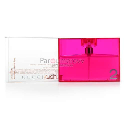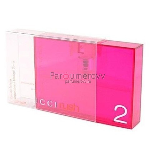 Gucci Rush 2 – аромат для женщин от знаменитого дома моды Gucci, который является одним из самых престижных, широко узнаваемых и влиятельных модных брендов мира. Gucci Rush 2 был выпущен в 2001 году и дополнил семейство ароматов цветочные древесно-мускусные. Автор букета – парфюмер Michel Almairac. Gucci Rush 2 посвящается пылкой, шикарной женщине, которая хочет очаровывать и вызывать восхищение. Красная губная помада, туфли на тонкой шпильке, открытое платье и несколько капель пьянящих духов, заставляющих мужские сердца замирать в ожидании их таинственной богини. Верхние ноты: ландыш, роза и фрезия; ноты сердца: гардения, лилия, нарцисс и дерево пальмы; ноты базы: мускус, черная смородина и дубовый мох.