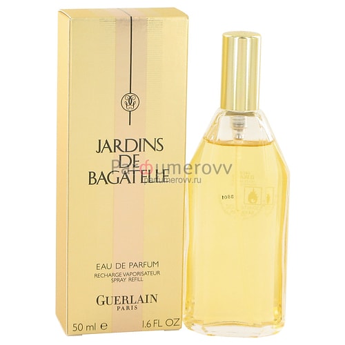 Старинный французский парфюмерный дом Guerlain представил свой новый женский аромат Jardins de Bagatelle в 1983 году. Он относится к группе ароматов цветочные. Парфюмерами аромата стали Jean-Paul Guerlain.Интенсивный, цветочный, яркий аромат Jardins de Bagatelle от Guerlain повествует нам о знаменитом цветочном саде, расположенном в Булонском лесу, недалеко от замка Багатель, в котором на сегодняшний день растет более семисот сортов цветов. Он проведет свою обладательницу по освещенному солнечному летнему саду и откроет ароматы этих сказочных цветов.В парфюмерную композицию аромата вошли ноты альдегидов, жасмина, бергамота, лимона, магнолии, туберозы, апельсинового цвета, орхидеи, гардении, иланг-иланга, ландыша, розы, нарцисса, пачули, мускуса, ветивера, нероли и кедра.