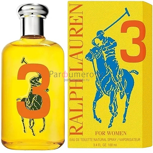 Ralph Lauren Big Pony 3 for Women от Ralph Lauren - парфюм для смелых и независимых женщин. Аромат начал выпускаться в 2012 году. Композиция принадлежит к группе цветочных фруктовых ароматов.Если для Вас важна независимость и свобода, Вы имеете свое личное мнение, и руководствуетесь только им, а не чужими убеждениями, то этот жизнерадостный и яркий парфюм создан для Вас. Такому оптимистичному парфюму вполне соответствует яркое оформление. На флаконе желтого цвета изображена оранжевая цифра 3. Бутылочку украшает игрок в поло, сидящий на пони.Композиция аромата включает ноты: груша и мимоза.