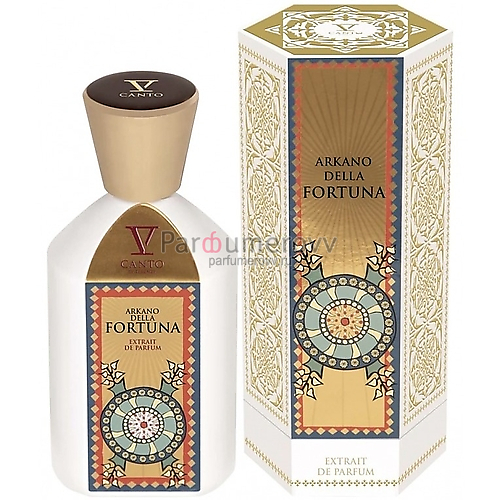 V Canto Arkano Della Fortuna — цитрусово-пряный аромат, выпущенный в 2024 году итальянским нишевым парфюмерным домом V Canto в рамках коллекции Arkani, вдохновленную мистикой карт Таро. Парфюм с названием Аркан Фортуны задуман, как ольфакторный амулет на удачу, который защищает и приносит процветание. Это приглашение праздновать каждый момент, использовать возможности и верить в невероятную силу наших мечтаний. Парфюм открывается игристыми нотами итальянских цитрусовых: бергамот из Калабрии с его пикантными, игристыми и слегка горьковатыми нотами сочетается с мандарином, который добавляет сладости и живости. Лимон из Сорренто, символизирующий свежесть и солнечную энергию, завершает это трио цитрусовых и обеспечивает взрывное начало. В сердце V Canto Arkano Della Fortuna ощущаются спокойствие и безмятежность, вызванные лавандой озера Гарда в сочетании с опьяняющей сладостью индийского жасмина самбака и королевской амброй. В базе мускус смешивается с бразильским бальзамом толу, дающем тепло и глубину. Франжипани добавляет экзотический, цветочный оттенок своими сливочными, притягательными нотами, в то время как береза добавляет намек на силу и деликатность, запечатывая аромат прочной, обволакивающей базой.